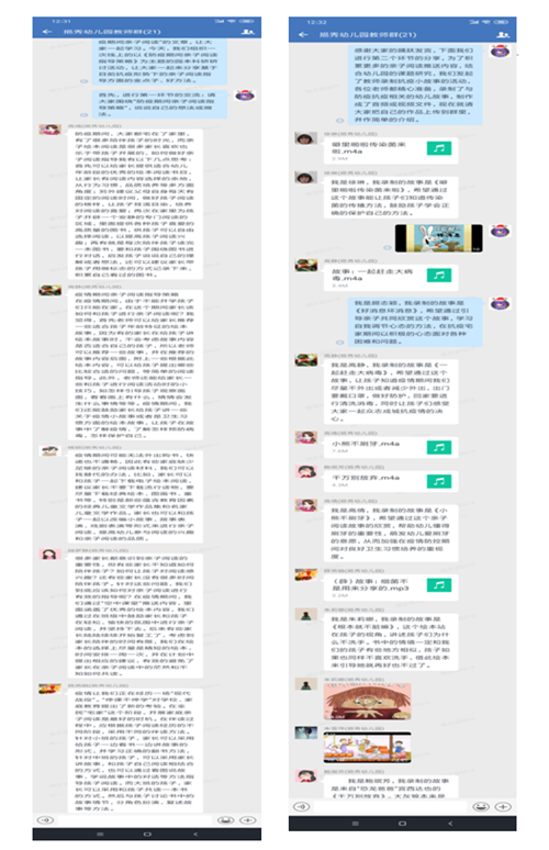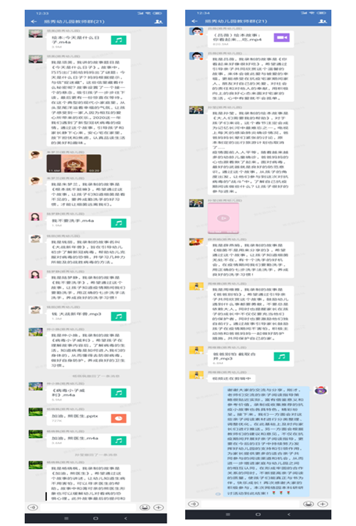 在本次活动中,教师们不仅学习了教育专家的一些指导性文章,更积极参与了交流和创作活动,老师们交流的亲子阅读指导策略很贴近实际,富有借鉴意义和参考价值,录制或收集推荐的抗疫小故事也各具特色,精彩纷呈。接下来,我们不仅会及时向家长们推送这些对这些亲子阅读小故事,更会根据教师们的建议和意见,持续努力发挥好幼儿园的支持和引领作用,开展好亲子阅读指导,为家长提供更多的适合亲子共同参与的阅读渠道和机会,从而进一步增进家庭与幼儿园之间的相互认同,不断提高亲子阅读的质量,使孩子们能真正与书为伴,快乐成长! |